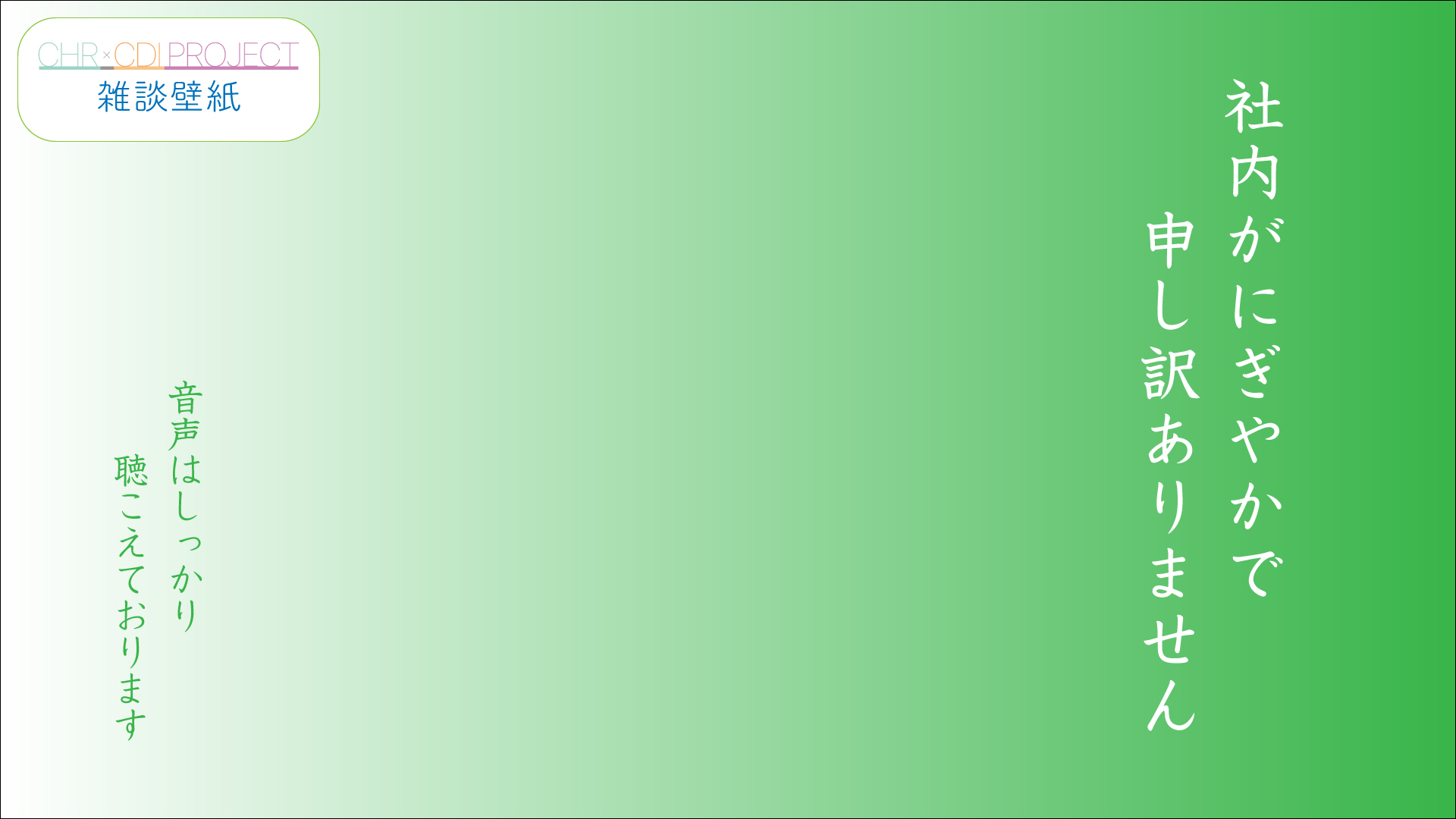 職場や在宅ワーク中のリモート会議のバーチャル背景にも使える「雑談壁紙」です。近況報告、お願い、クスっと笑える小ネタなど、さまざまなパターンを用意しました。コミュニケーション不足の解消にご活用ください。